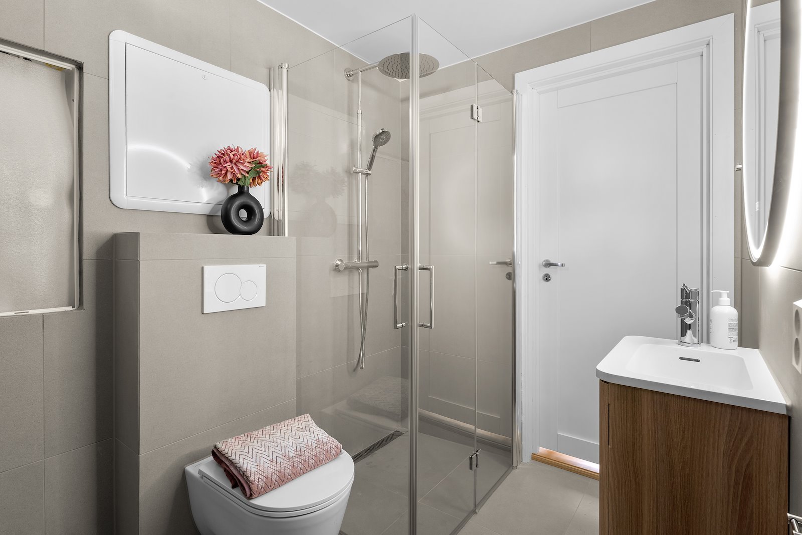 Vi totalrenoverte en tomannsbolig på Oppsal og lagde to enheter. Denne enheten besto av underetasje og 1.etasje. Egen hage og platting samt balkong med nydelig utsikt over Østensjøvannet.